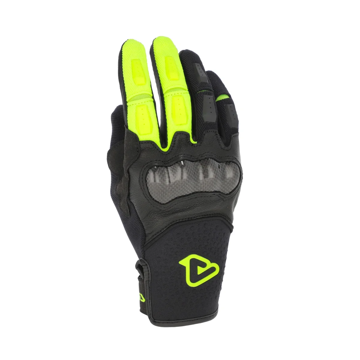 Il dorso è realizzato in una combinazione di poliestere, nylon, poliuretano, neoprene e pelle di capra, mentre il palmo, in pelle sintetica Nanofront, assicura un grip eccellente e grande all’usura. Le nocche rigide e lo slider sul palmo garantiscono protezione lasciando, al tempo stesso, massima libertà di movimento.
