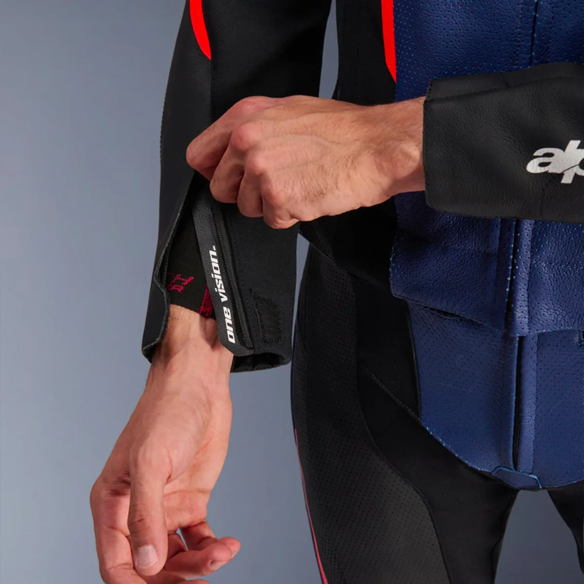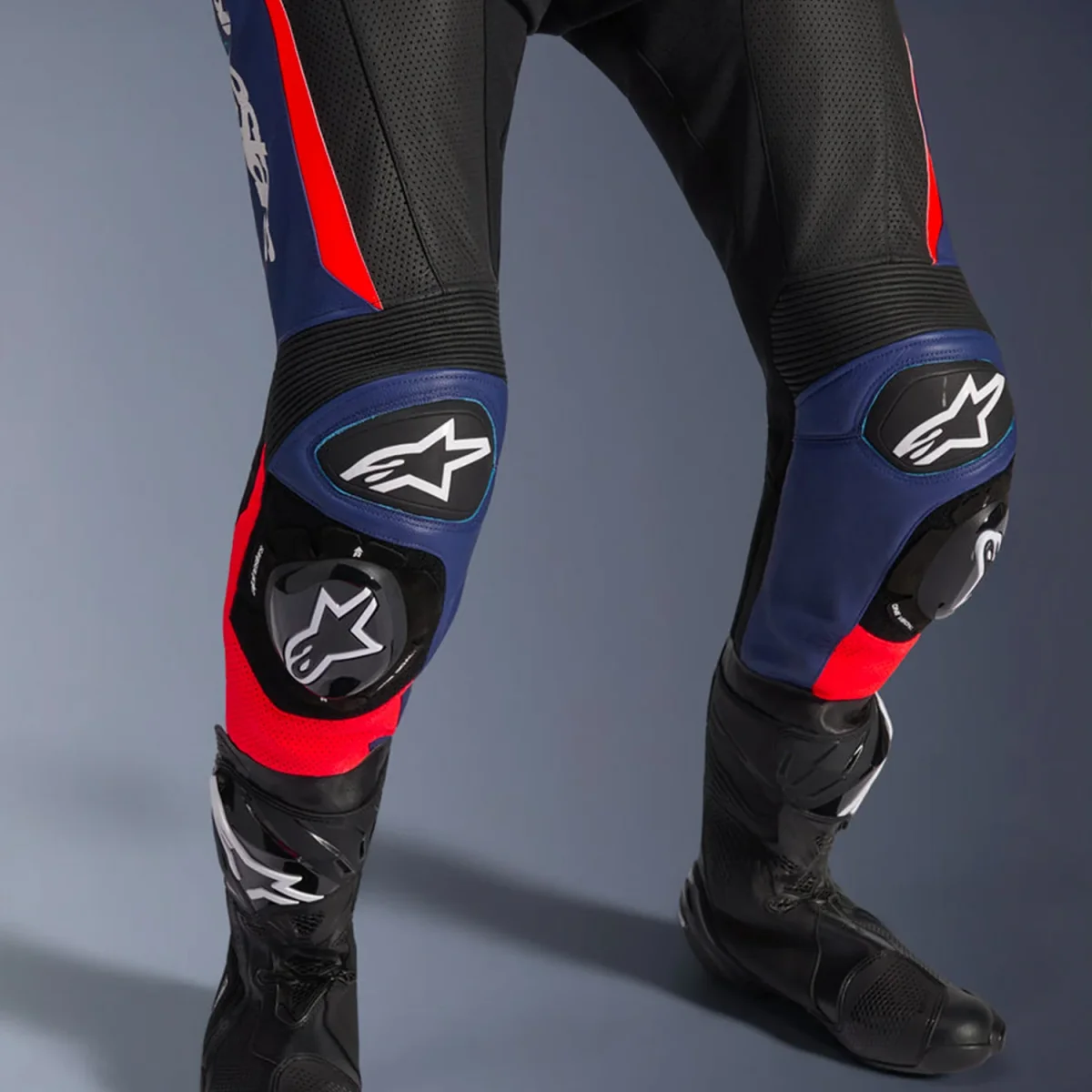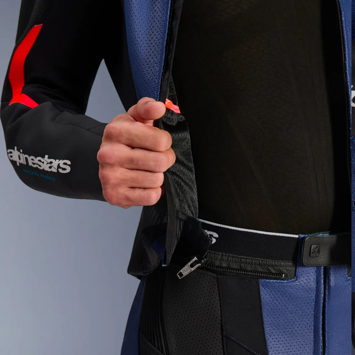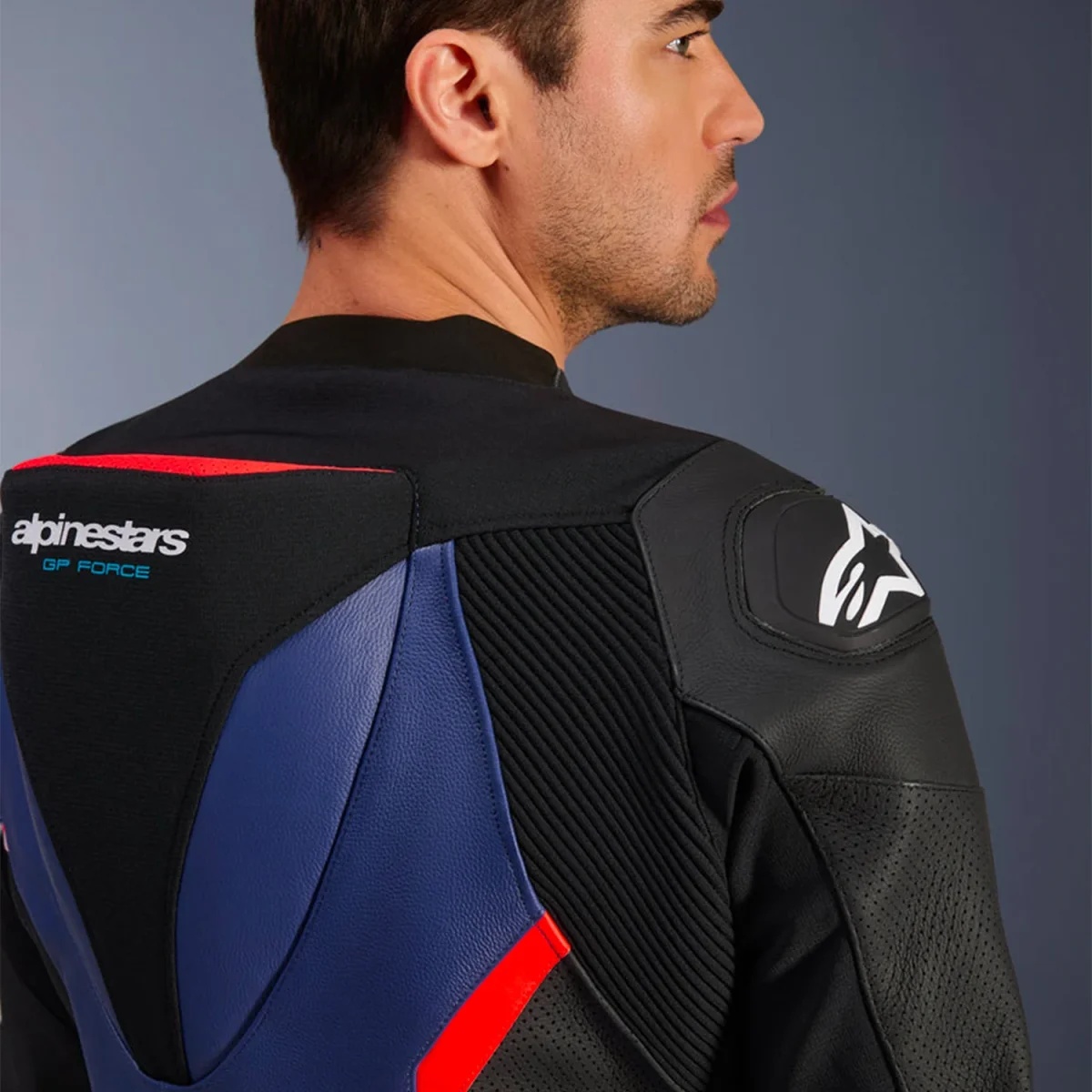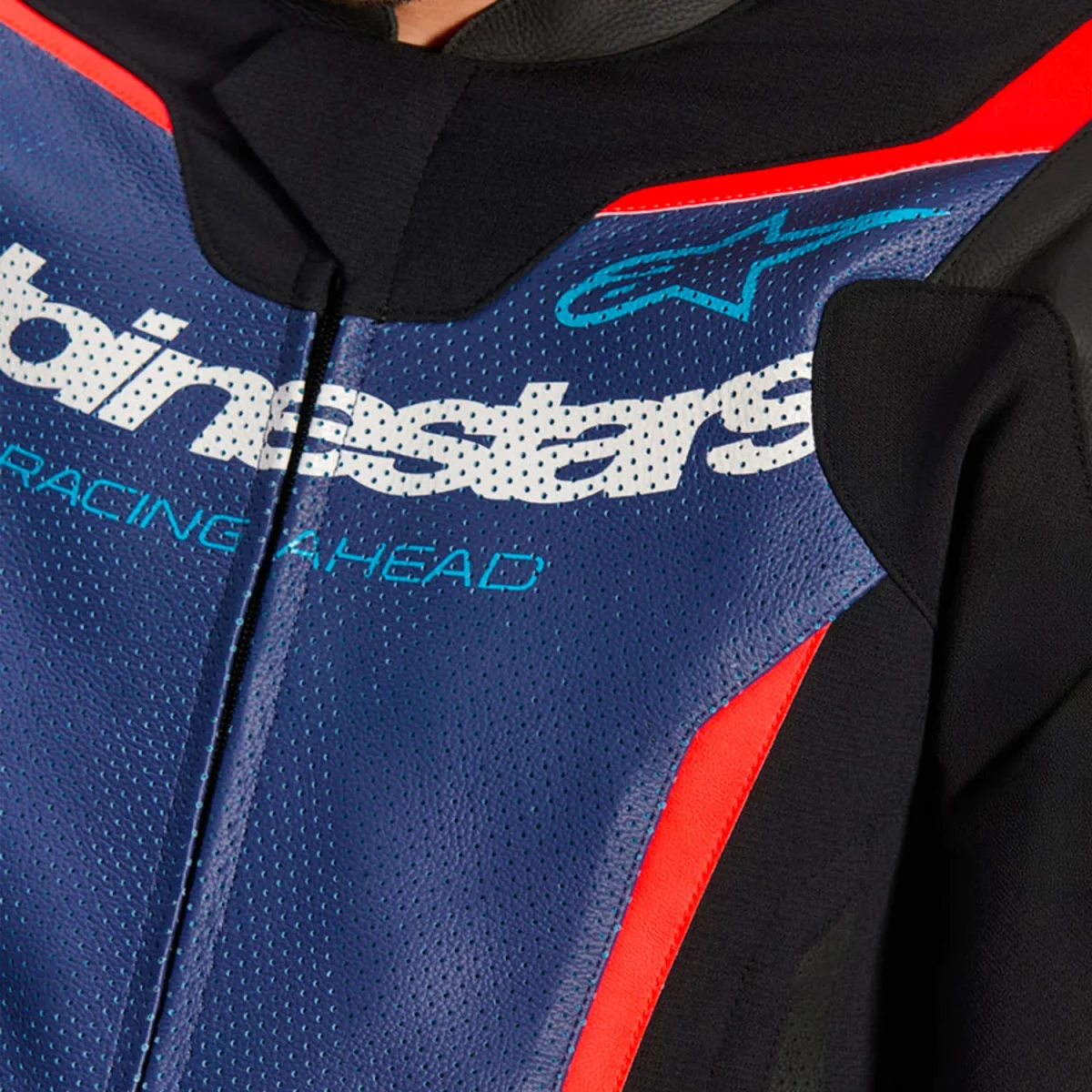 - Pannelli di ventilazione in pelle perforata su petto, schiena, maniche e gambe