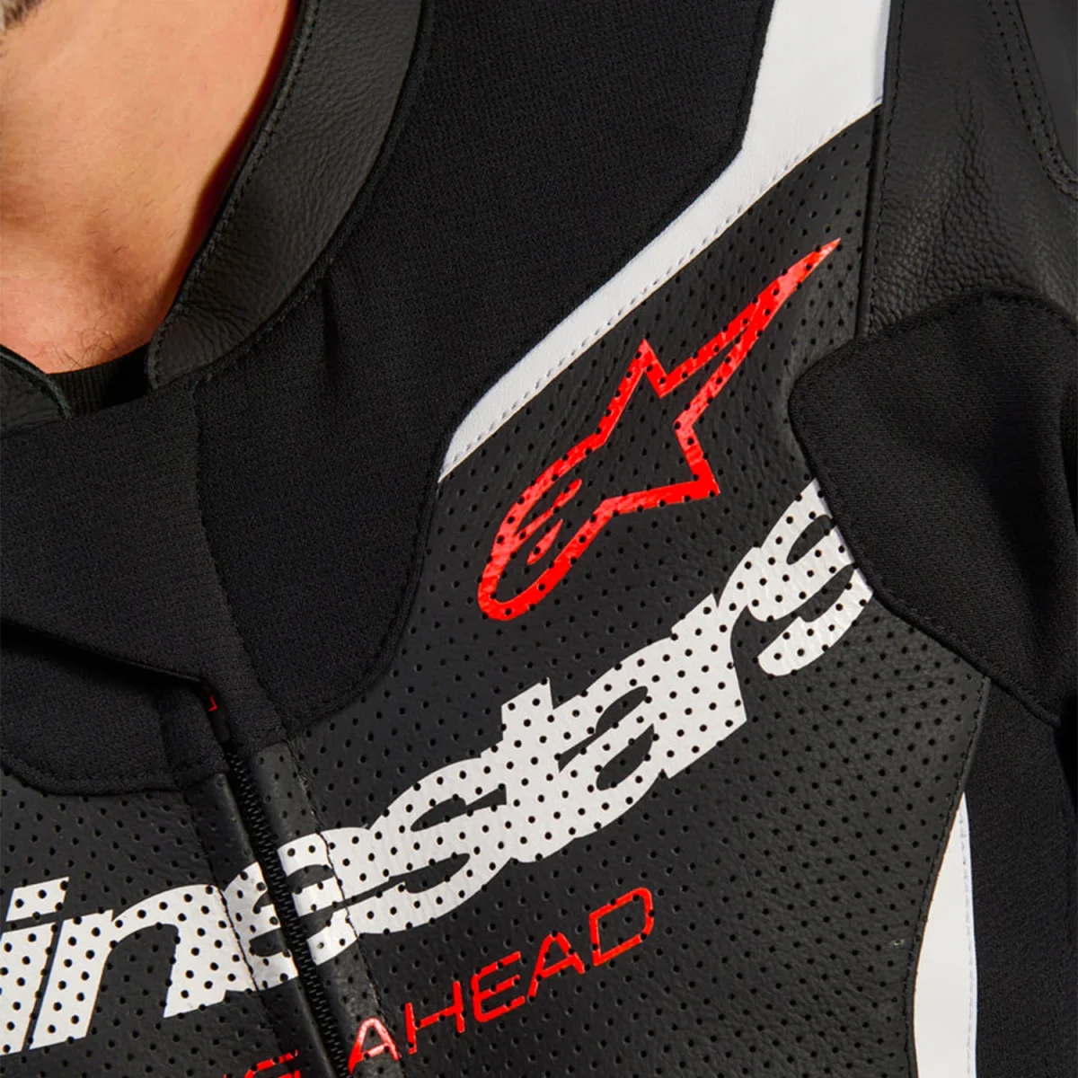 - Flusso d’aria ottimizzato: Pannelli in pelle traforata su petto, schiena, maniche e gambe per il massimo flusso d’aria e ventilazione.