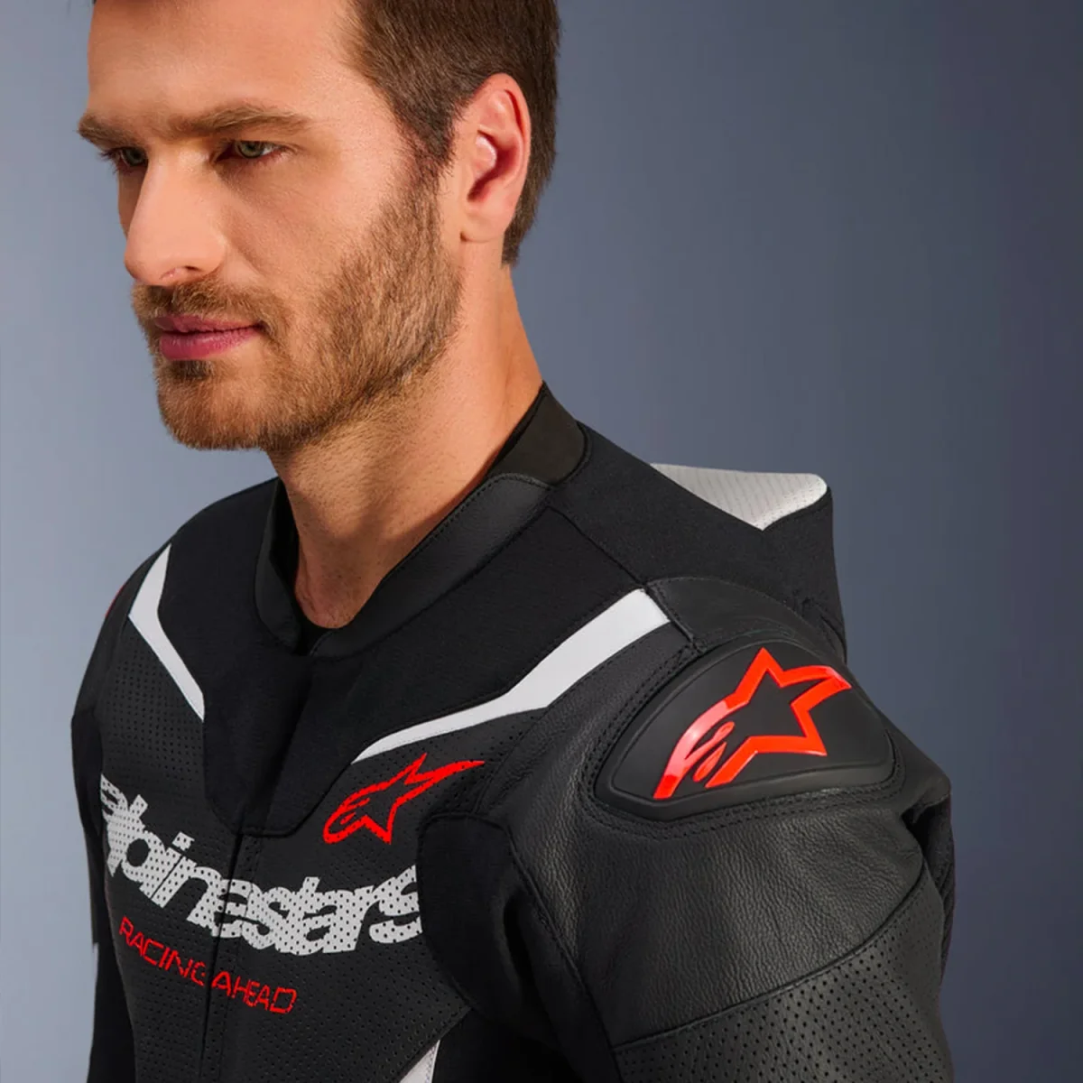 - Vestibilità sportiva: Inserti a fisarmonica in pelle su parte bassa della schiena, spalle e ginocchia per una maggiore elasticità e una vestibilità sportiva ottimizzata.
