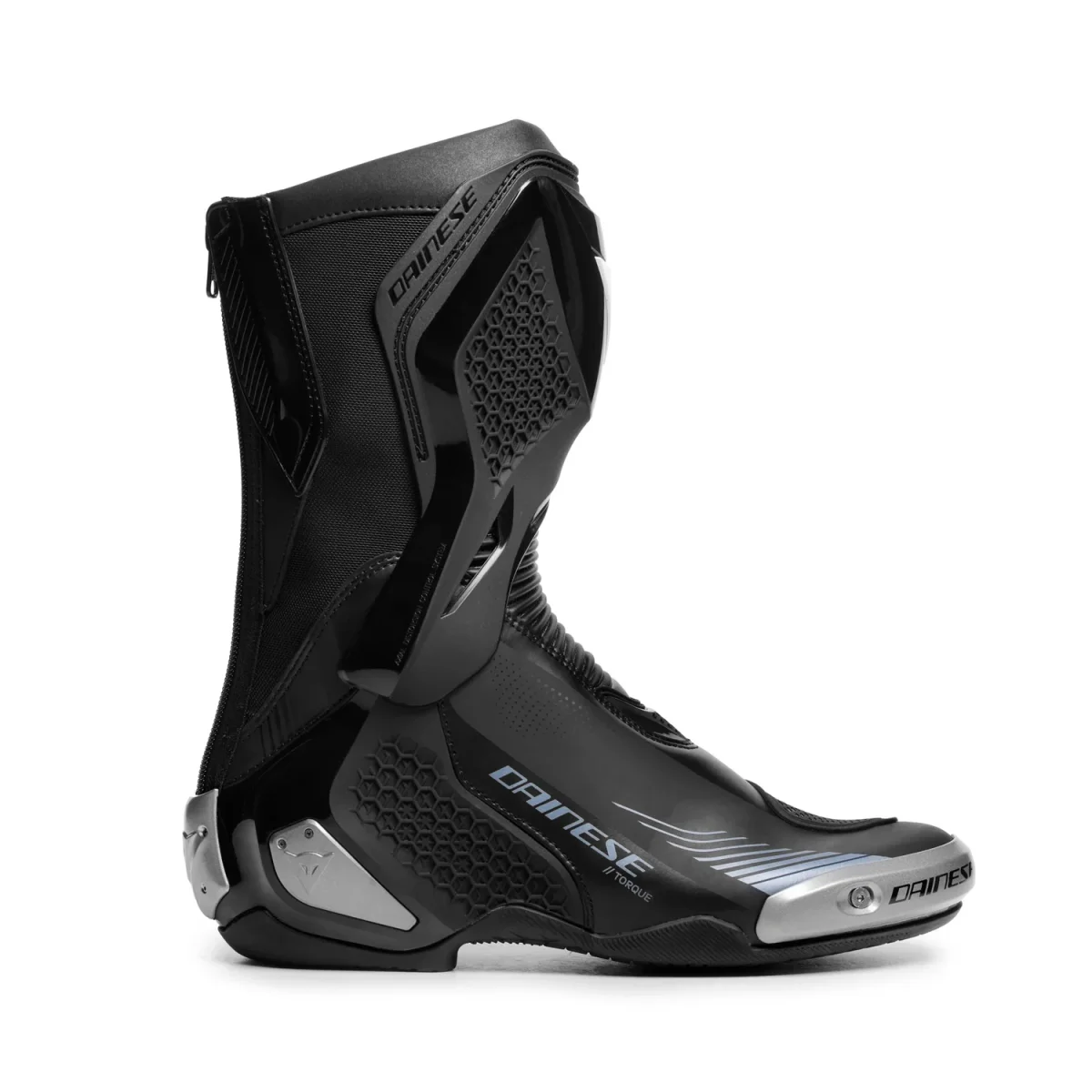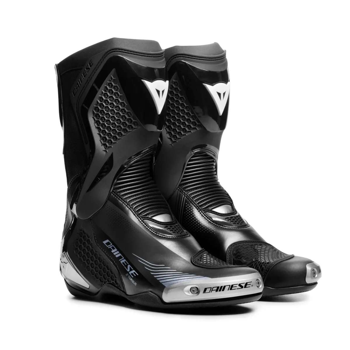 Realizzato in microfibra e tessuto D-Stone™ con sistema D-Axial in TPU ad alta aderenza e tomaia perforata per la massima ventilazione, questo stivale racing, derivato dal top di gamma Dainese Axial 2, garantisce massima comodità e alti standard di protezione mantenendo un design sportivo e accattivante.