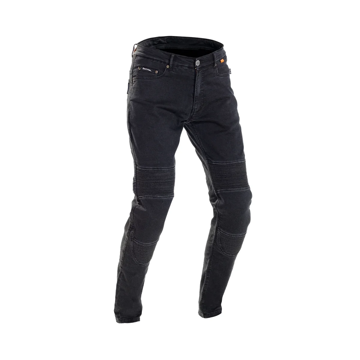 Jeans da moto con Kevlar, protezioni D3O sulle ginocchia ed elastici a soffietto nella zona posteriore e sulle ginocchia.