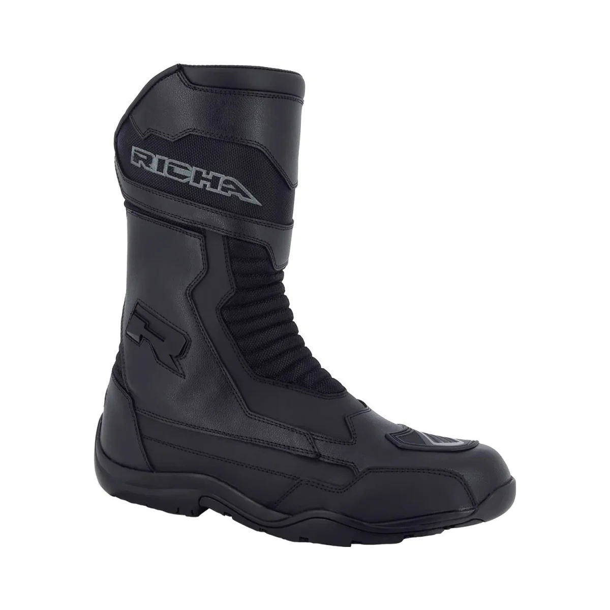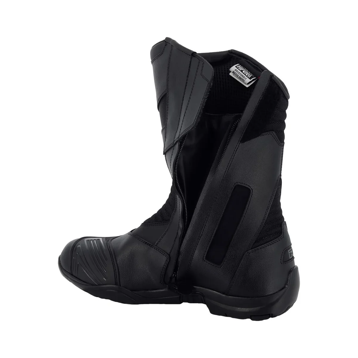 Stivali da moto con membrana impermeabile e traspirante, suola antiscivolo e cerniera laterale.