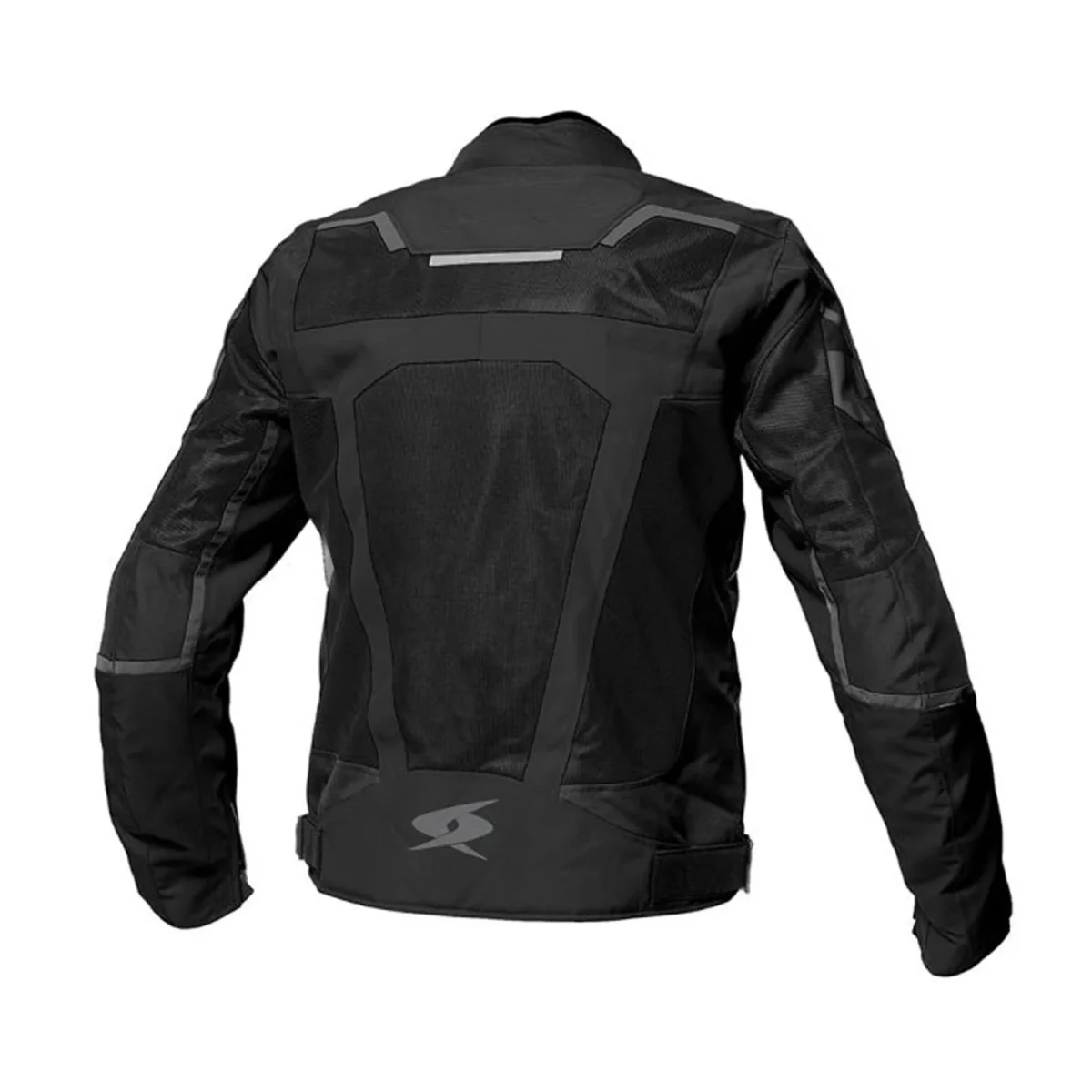 Giubbino moto da turismo 2 strati con aree traforate su petto, interno manica e schiena.