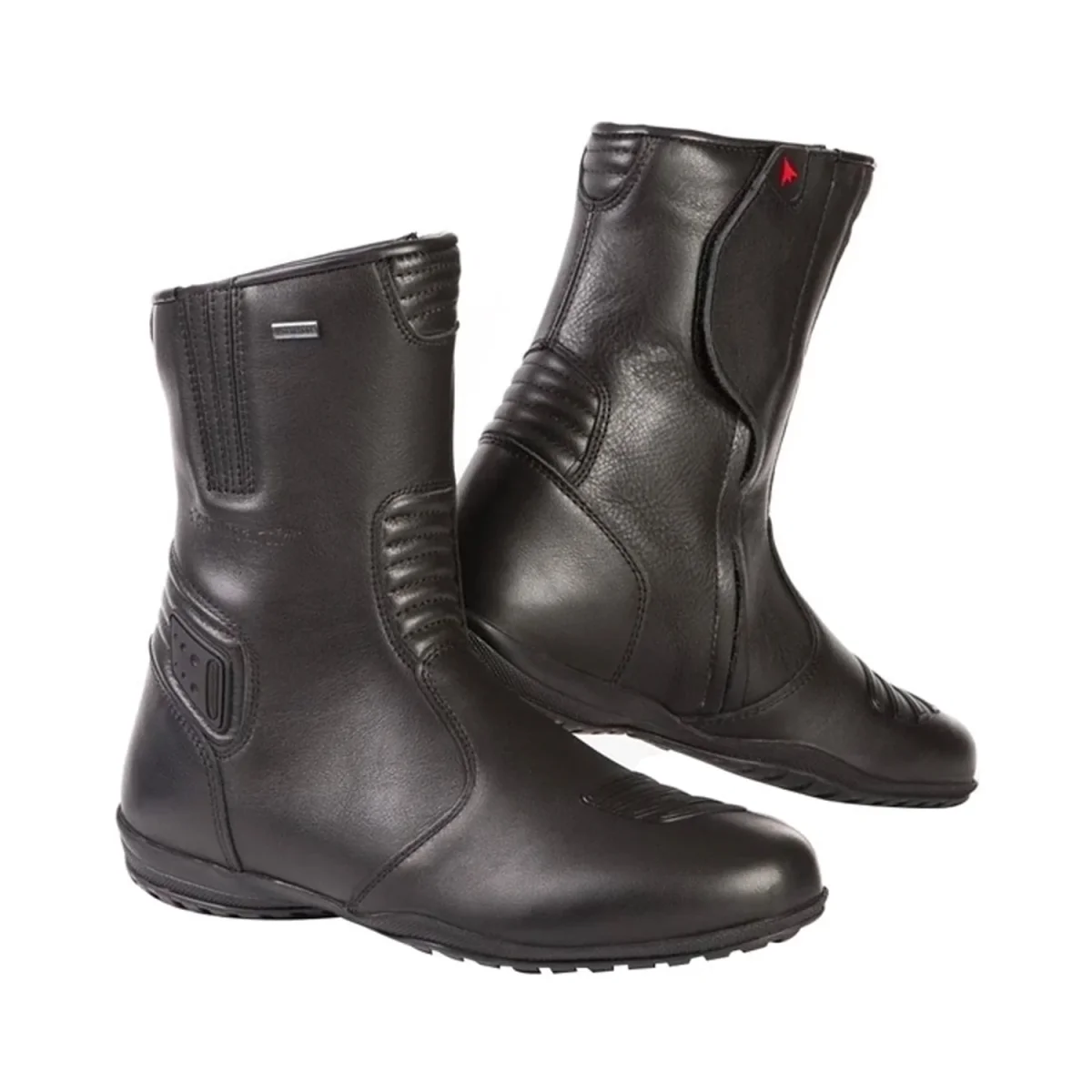 Stivali Stylmartin Denver WP neri. Stivali Touring dal taglio liscio, realizzati in pregiata pelle liscia pieno fiore. Hanno una fodera interna impermeabile e traspirante. Incorporano rinforzi in PU nell’area del malleolo, inserti in TPU e rinforzi nell’area degli ingranaggi. Chiusura con cerniera laterale con velcro.Caratteristiche principali:MaterialeRealizzato principalmente in pelle pieno fiore.TemperaturaFodera interna impermeabile e traspirante.ProtezioneProtezione in PU su entrambi i lati dell’area del malleolo.Inserto in TPU iniettato sul lato esterno per una maggiore protezione.ComfortInserti a fisarmonica per una maggiore mobilità.Rinforzo in pelle integrato nella zona del cambio.Sottopiede anatomico estraibile, traspirante e microforato.Sistema di chiusura con cerniera laterale con velcro.Suola in gomma antiscivolo.