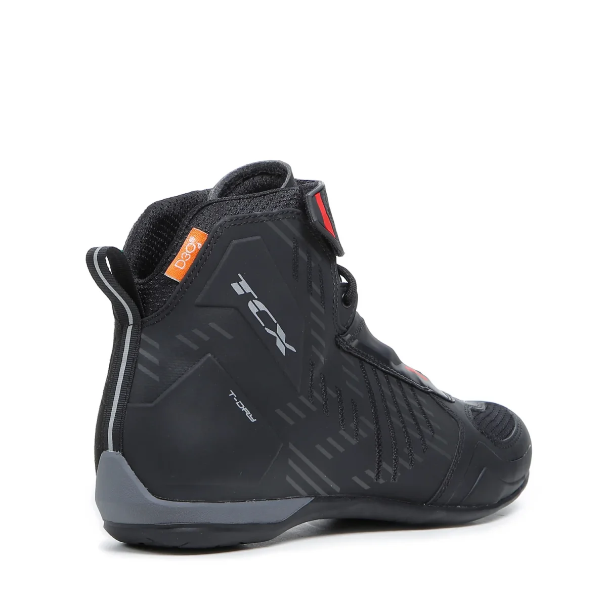 Le scarpe TCX RO4D Lady WP integrano il plantare OrthoLite® ad ammortizzazione durevole e alta traspirazione, la suola Groundtrax® costruita in gomma anti usura, che assicura massima aderenza, sensibilità e un comfort adeguato a una scarpa da moto da indossare tutto il giorno, mentre la tomaia è in tessuto mesh con rivestimento hot melt.