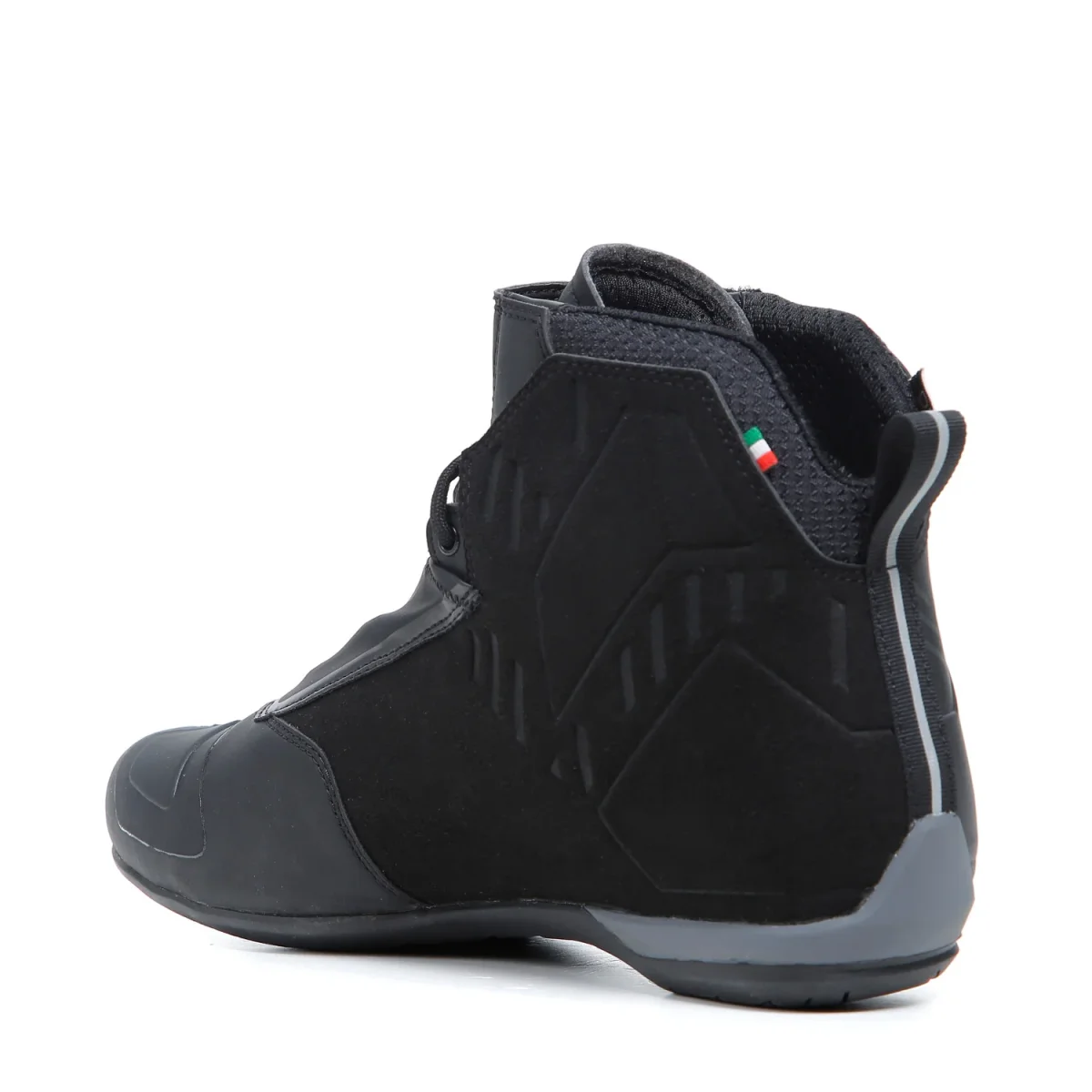 La tomaia in microfibra garantisce grande sensibilità di guida e una calzata precisa. R04D Lady WP presenta chiusura con lacci, ghetta a copertura e velcro di regolazione nella zona del collarino e, per la massima sicurezza, il paraleva in pelle Bycast e l’elemento rifrangente sul retro. La protezione è garantita dagli inserti sui malleoli in D3O® e i rinforzi sulla punta, sul tallone e sull’area del cambio.