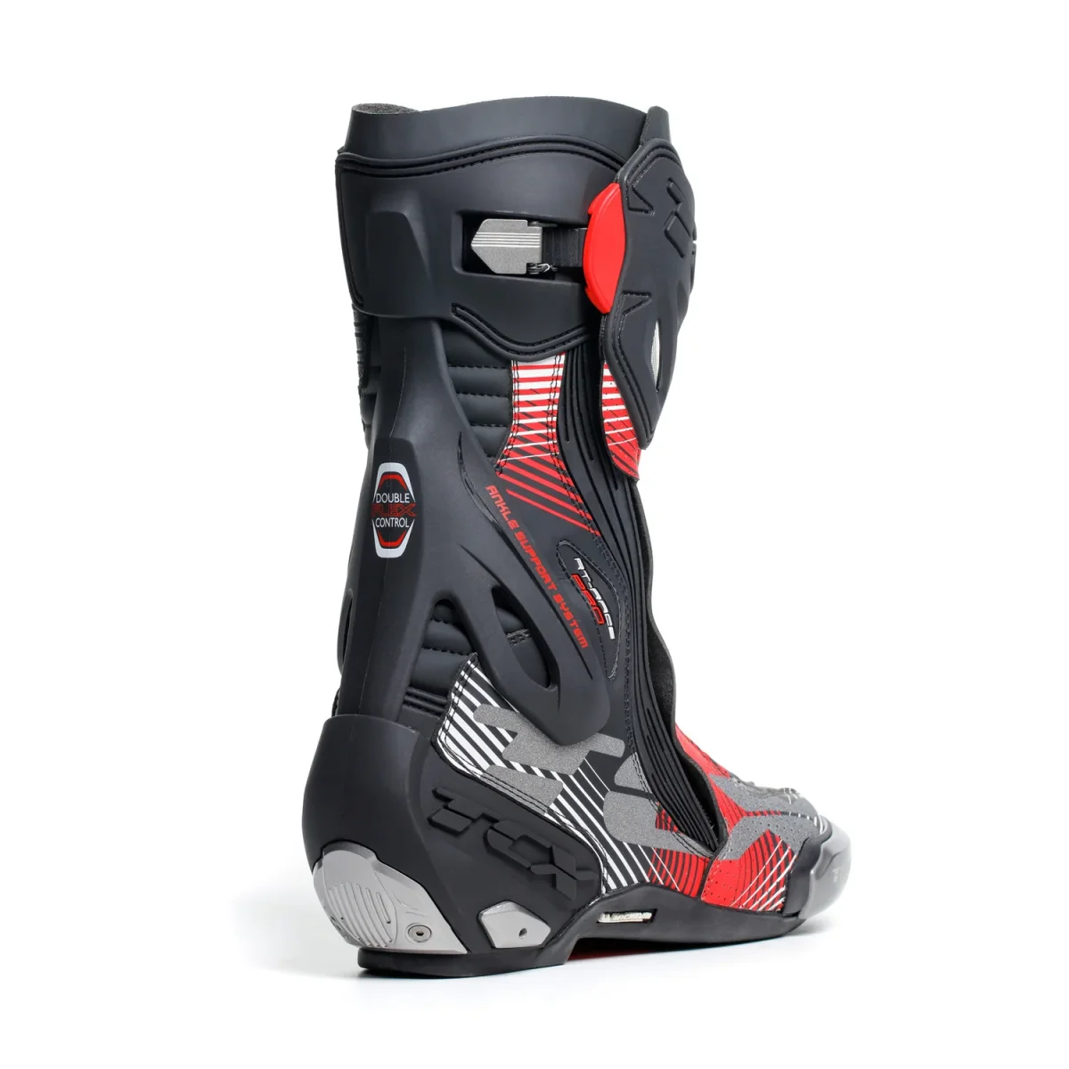 Gli stivali moto TCX RT-Race Pro Air sono dotati del sistema antitorsione Double Flex Control, uno snodo in poliuretano posizionato nell’area della caviglia capace di controllare millimetricamente il movimento offrendo supporto e flessibilità ottimale dell’articolazione, per evitare pericolose torsioni e possibili traumi. La tomaia, realizzata in microfibra ad alta resistenza all’usura, è traforata per garantire una ventilazione ottimale del piede e rimanere in perfetto comfort anche con temperature elevate.