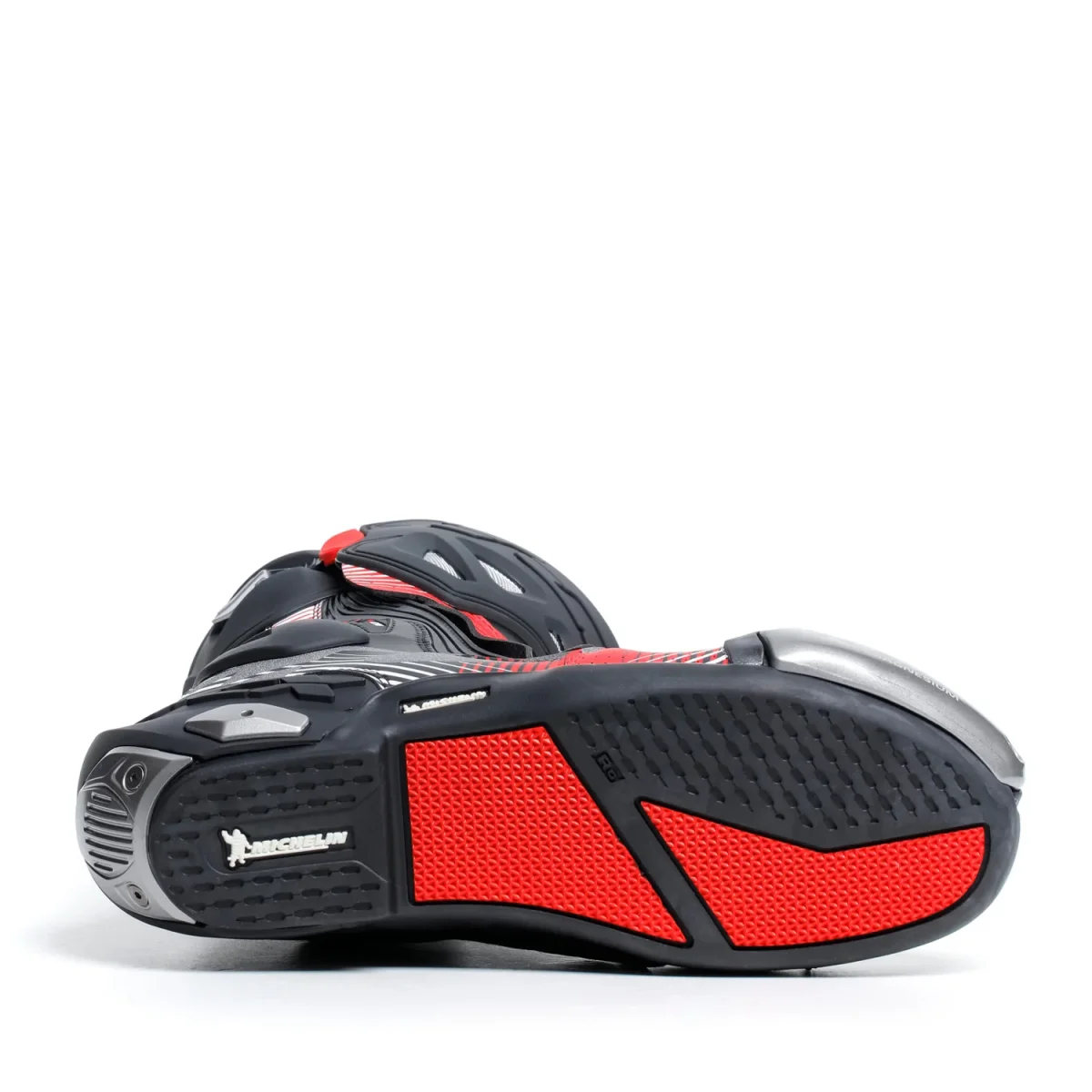 La fodera interna è in tessuto mesh AIR TECH traspirante e presenta un’imbottitura a spessori differenziati posizionata nell’area della caviglia per offrire il massimo confort. La suola “Burnout” realizzata da TCX in collaborazione con il centro ricerche Michelin® è ispirata allo pneumatico “Power Supersport Evo” Michelin® e presenta un battistrada bi-mescola a zone di grip differenziato, studiate per garantire un livello superiore di aderenza sulle pedane e i comandi e una maggiore resistenza a usura e abrasione contro l’asfalto.