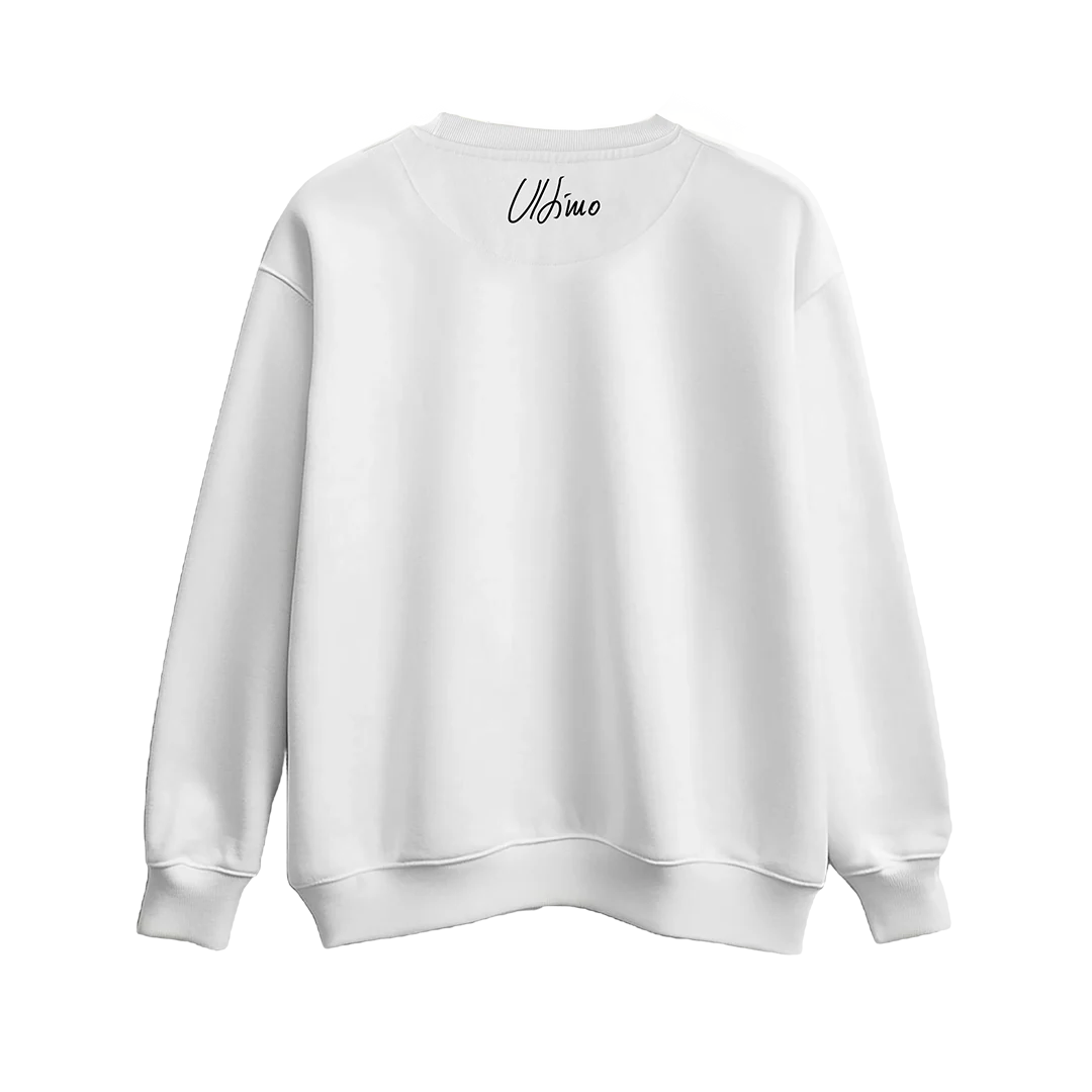 Felpa bianca senza cappuccio. 80% cotone organico 20% poliestere riciclato.